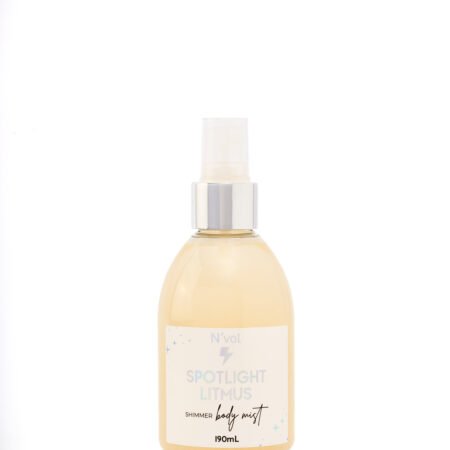 El Shimmer Spotlight Litmus, es un agua tónica que deja en la piel brillos DORADOS. Gracias a sus ingredientes naturales como: aloe vera, aminoácidos, agua de rosas y pantenol entre otros nuestro shimmer es una bruma refrescante que ultra hidratante y nutriente, que suaviza, calma y protege la piel dejándola luminosa de tonos dorados/tornasol. También, le aporta un aroma fresco, sutilmente amaderado a bergamota, y nuez moscada, ideal para la energía de la noche porque no compite, opaca o desmejora el aroma de los perfumes, por el contrario los complementa e intensifica.
